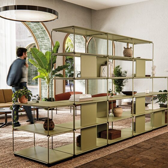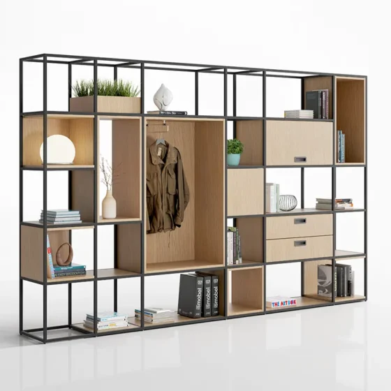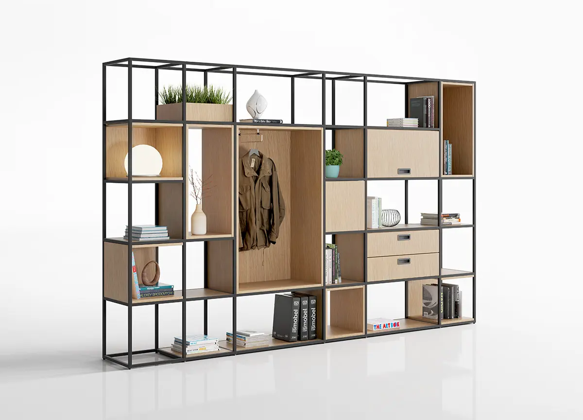 Las estanterías de Muebles Syl con su diseño funcional se adapta estéticamente en cualquier entorno, por lo que resulta ideal como solución de almacenaje decorativo en oficinas, despachos de dirección, coworkings o los home offices, así como en espacios hospitality, recepciones, lobbys o cafeterías…