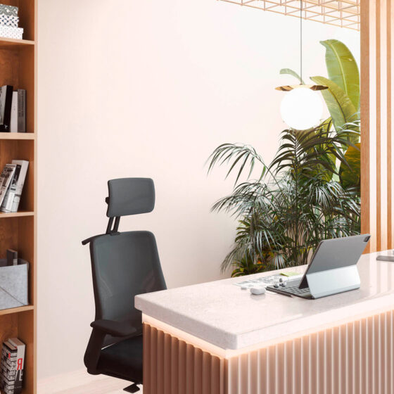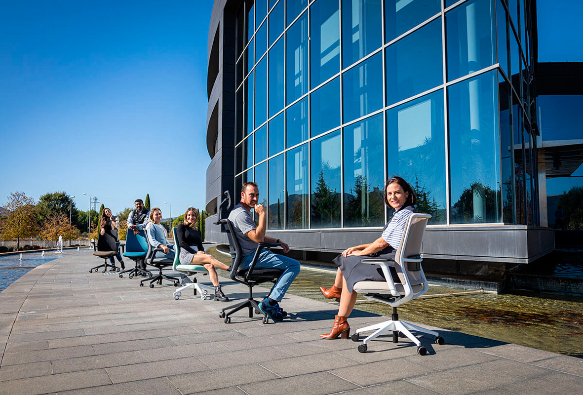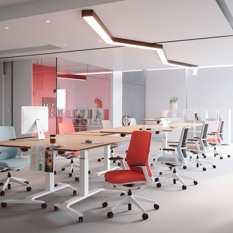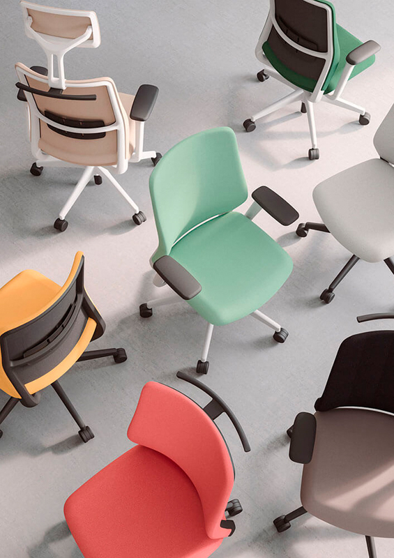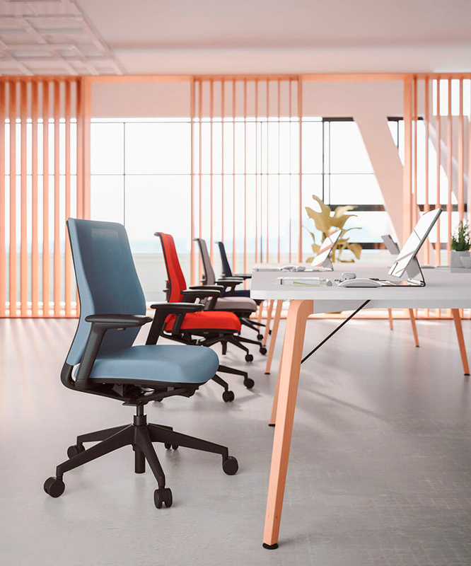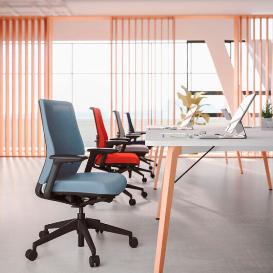 Mecanismo syncro “All in one“ La silla A+S Work cuida del usuario. Ha sido diseñada para ofrecer una experiencia completa de uso en el ámbito operativo, su cuidado diseño y capacidades ergonómicas son capaces de equilibrar al usuario en la silla, aportándole un alto grado de confort y rendimiento en las tareas que realice en su día a día. Mecanismo syncro “All in One” La silla dispone de un mecanismo syncro “All in One”, que nos permite una basculación sincronizada entre asiento y respaldo para aportar una mayor comodidad y una ergonomía correcta y dónde nos podremos reclinar en cuatro posiciones y/o bloquear la que más nos interese para nuestra salud postural. Ángulo negativo. Además, la silla incorpora de forma opcional un sistema de ángulo negativo de -5º, el cual nos permite mantener una postura con mayor acercamiento a una ergonomía correcta, además, de permitirnos una incorporación de la silla con mayor facilidad. Diseño fluido. La curva que dibuja el respaldo de la silla, genera una sensación de fluidez y movimiento, de tal manera que parece que seamos abrazados por esta misma y, por tanto, nos invite a cierta relajación del cuerpo (diseño háptico). Esto, junto con reducir el espesor de la espuma el sistema ACS del asiento, conseguimos aumentar los niveles de ergonomía.