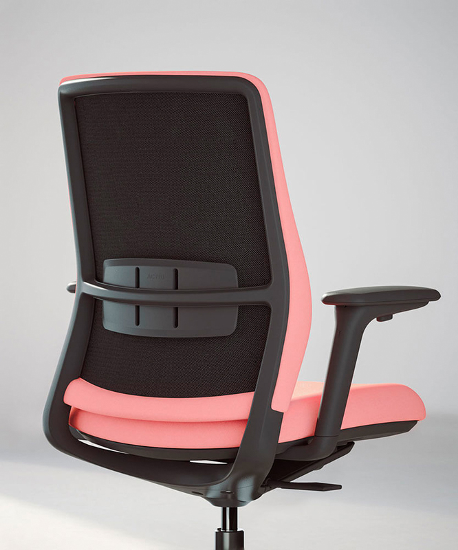 A+S Work dispone de un sistema de regulación del apoyo lumbar fabricado con material flexible y adaptable en acabado negro, con un recorrido máximo de 7 cm, situado en el respaldo de la silla. El empleo de tejidos elásticos combinado con la regulación del apoyo lumbar, permite una total adaptación a cada usuario, reforzando la tensión en los puntos en los que el peso es mayor.