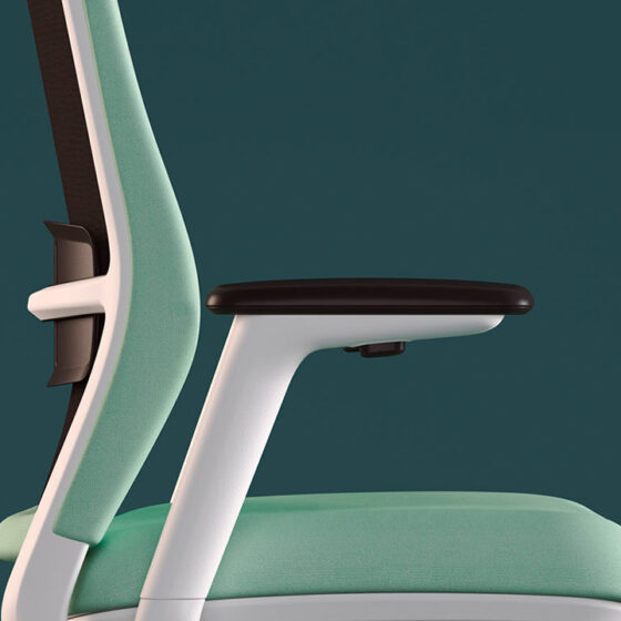 A+S Work dispone de brazos 2D y 4D intercambiables con caña de poliamida. El brazo dispone de regulación de altura que se acciona pulsando el botón situado bajo el reposabrazos. Dispone de 12 posiciones de bloqueo.