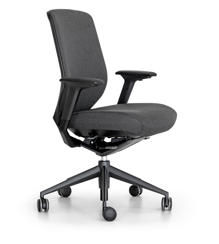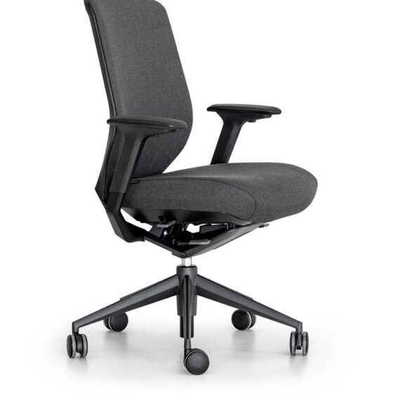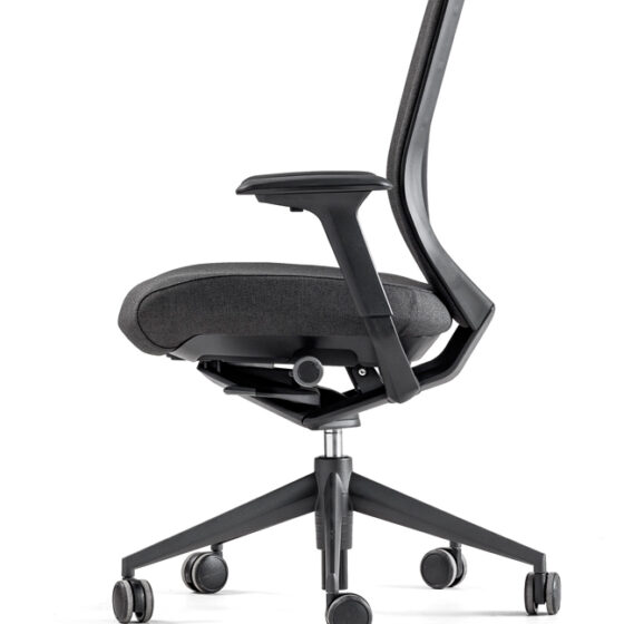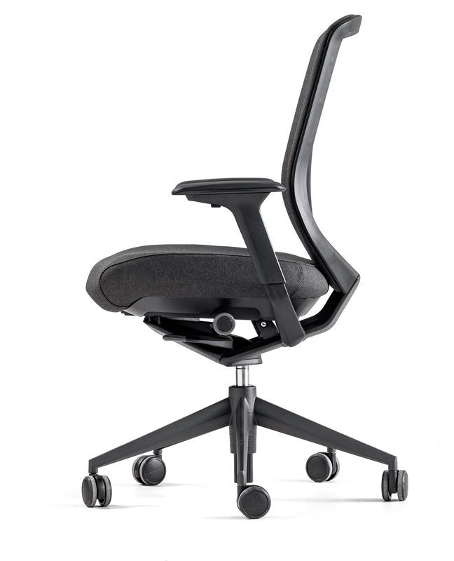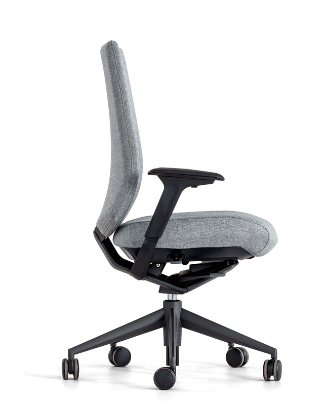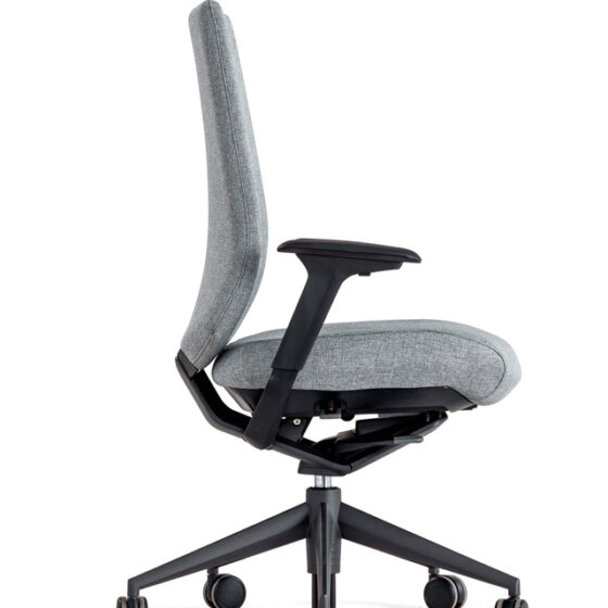Tres direcciones de ajuste: Regulación de altura con un rango total de elevación de 80 mm, desplazamiento longitudinal con un rango total de 45 mm y desplazamiento transversal con un rango total de 25 mm por cada reposa-brazos (50 mm total). El reposa-brazos está disponible en PUR y PP rígido.