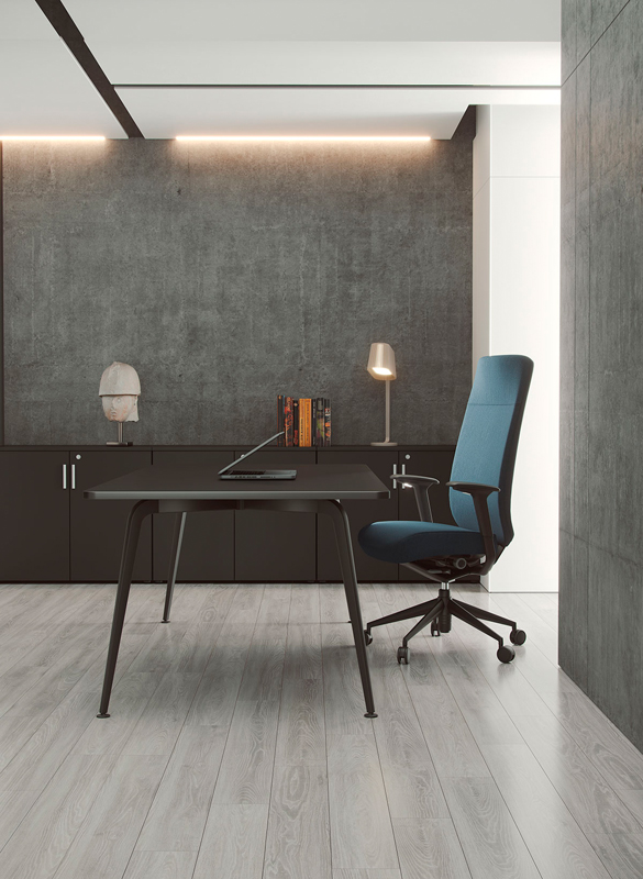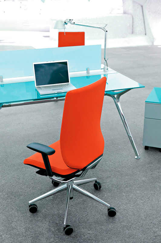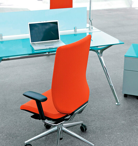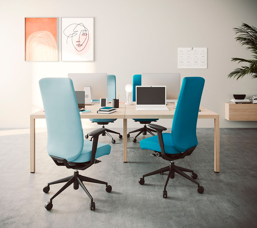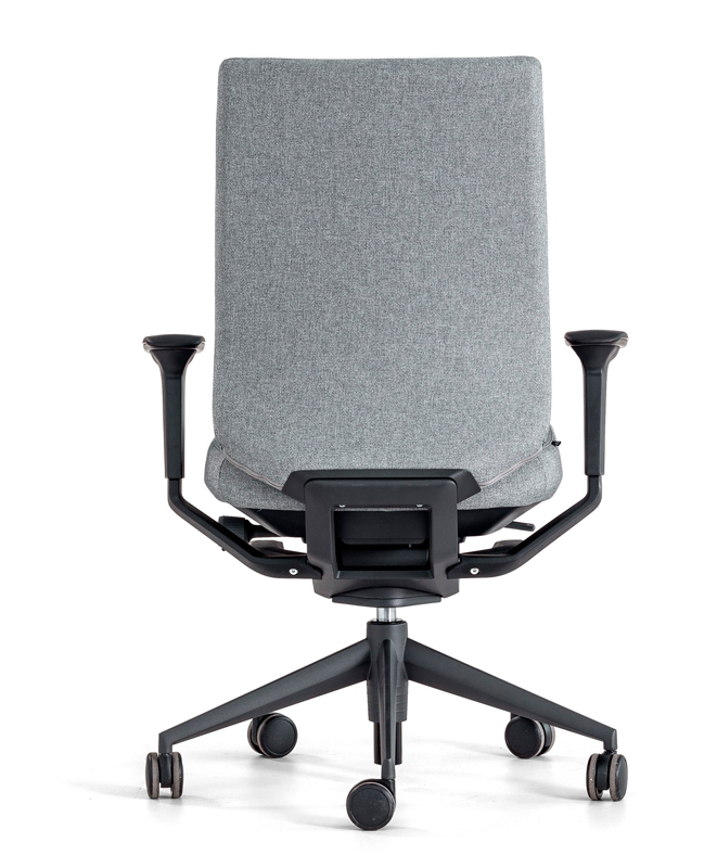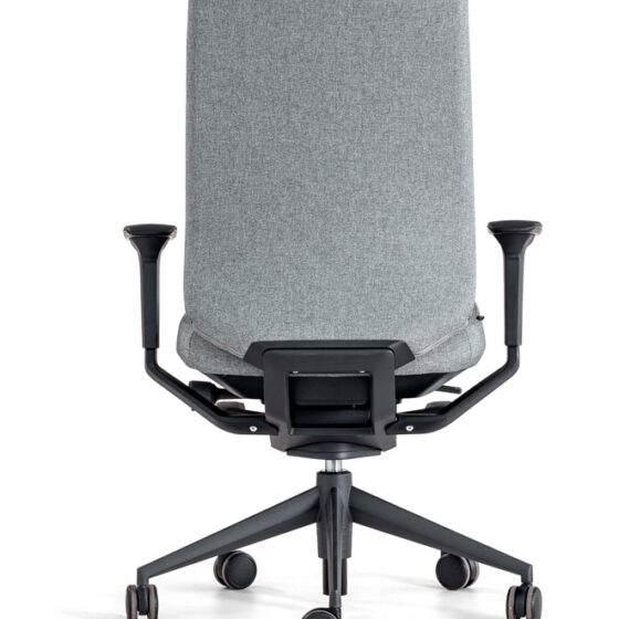 Respaldo Inyectado de espuma de PUR flexible de 75-80kg/m3 de densidad sobre estructura metálica interna de tubo de Acero de Ø 16 x 1,5 mm de espesor Tapizado enfundado, con dos alturas: Respaldo alto y Respaldo alto con cabecero. Asiento basculante 360º adaptativo. Permite ángulo negativo dinámico. Incorpora Inyectado de espuma de PUR flexible de 55-60kg/m3 de densidad con tecnología ACS (air comfort system) y laminas flexibles que reducen la presión en los músculos. Regulable en altura mediante pistón de gas. Regulación multiposicional de la profundidad del asiento con recorrido de 50mm.