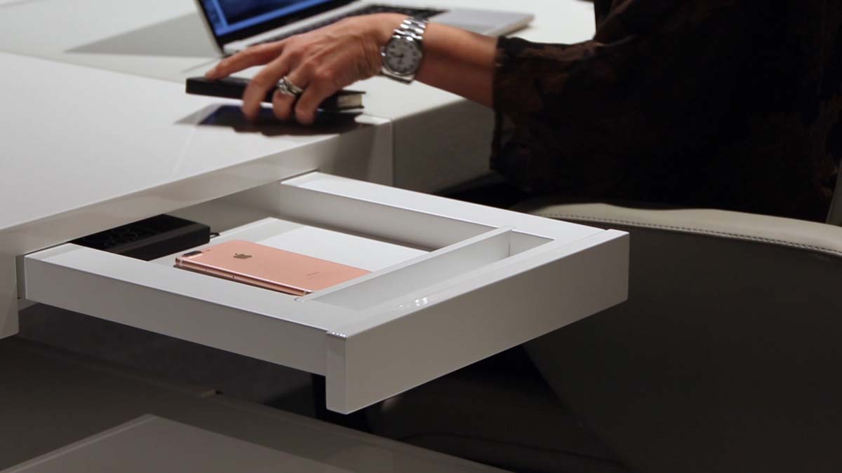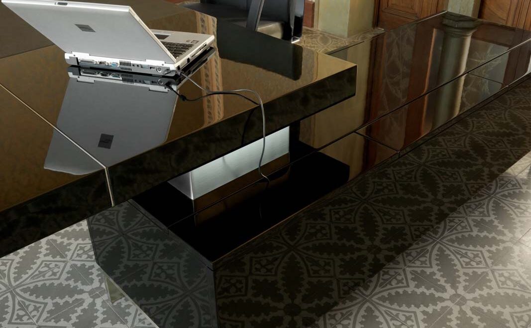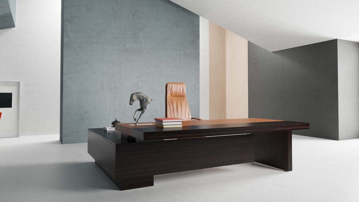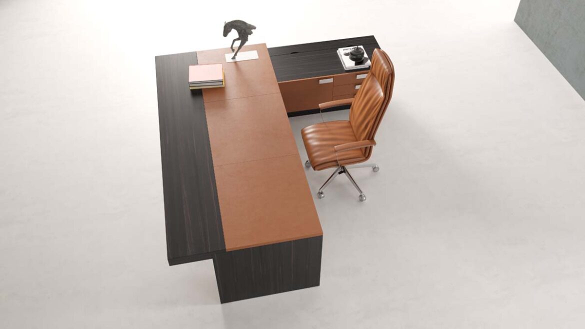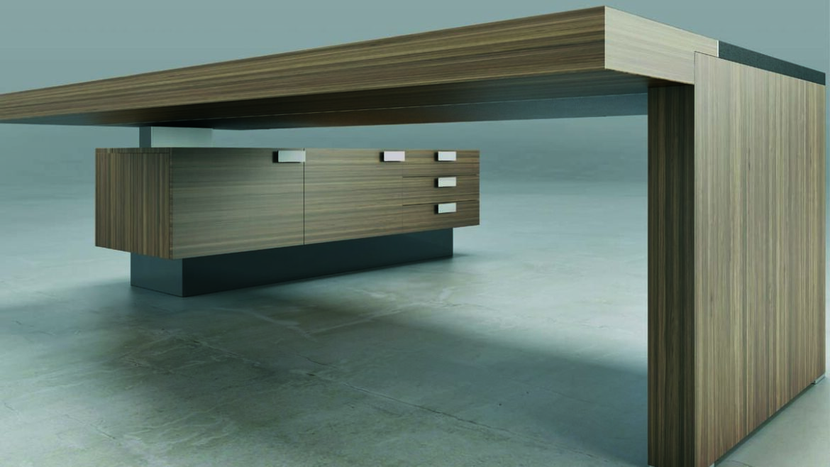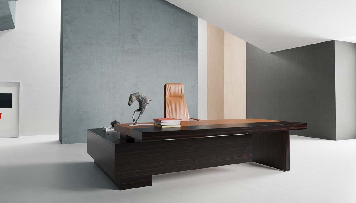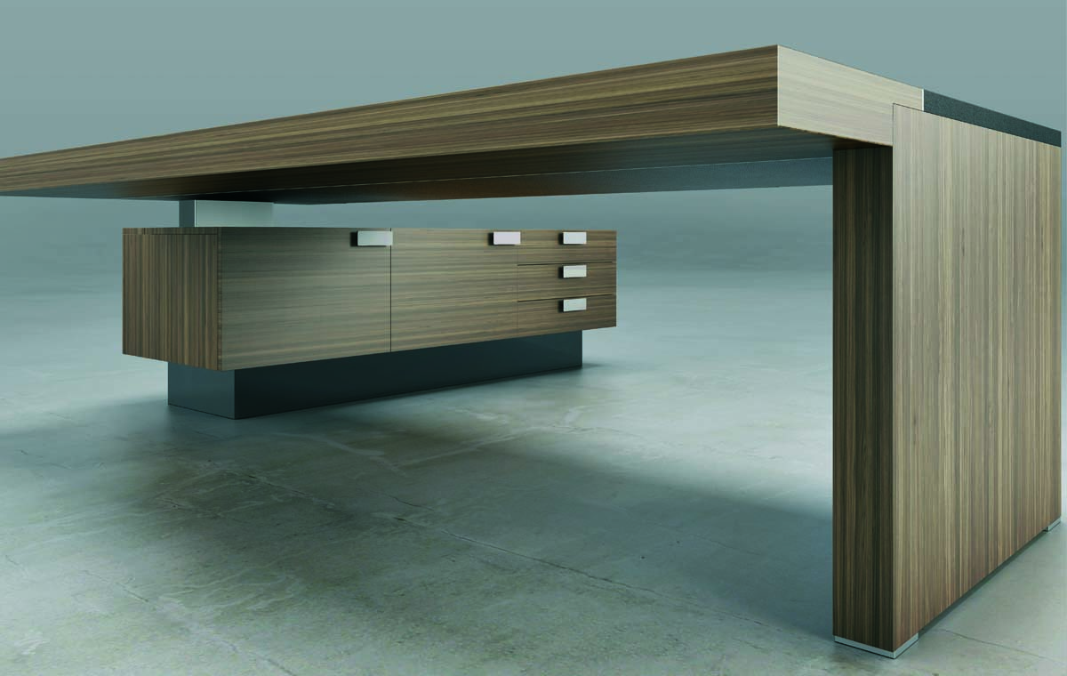 Es la culminación de dos años de diseño e investigación. Imagen solemne, tablero de 85mm y una cuidada selección y combinación de materiales. Sobres acabados en laca piano pulida a mano o en madera natural, combinados con elementos de acero inoxidable y porciones tapizadas en piel. Para CEO’s, Presidentes y Directores Generales para quienes su despacho forma parte de su personalidad.