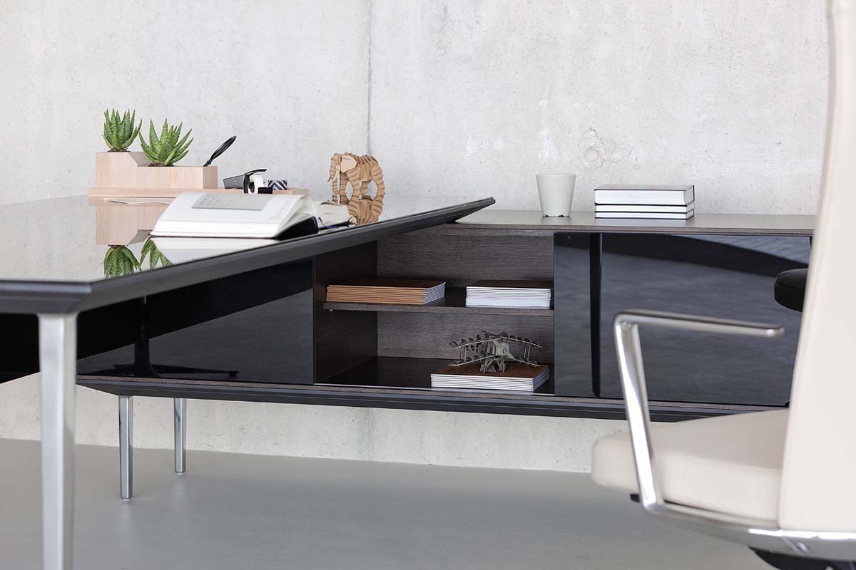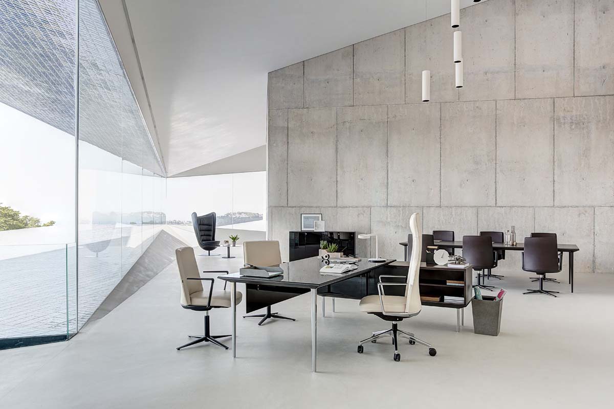 Como parte de un programa basado en un sistema modular, las mesas LONGO pueden mantener un concepto visual unitario en su espacio y también aportar con su esbelto diseño y su ligereza a cualquier zona o despacho.