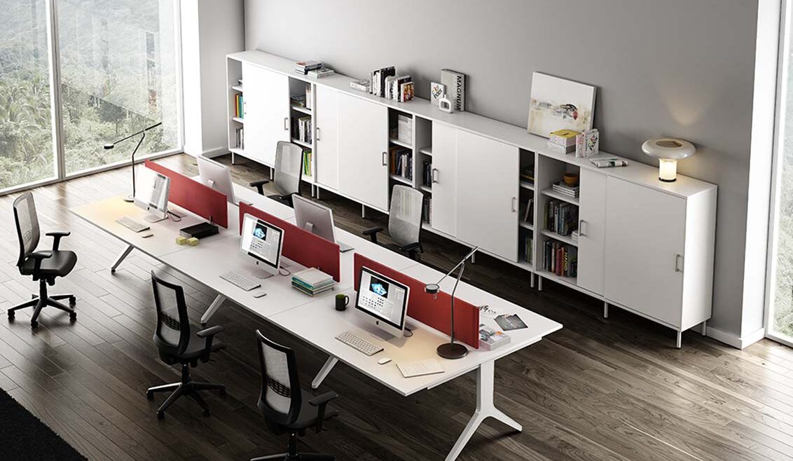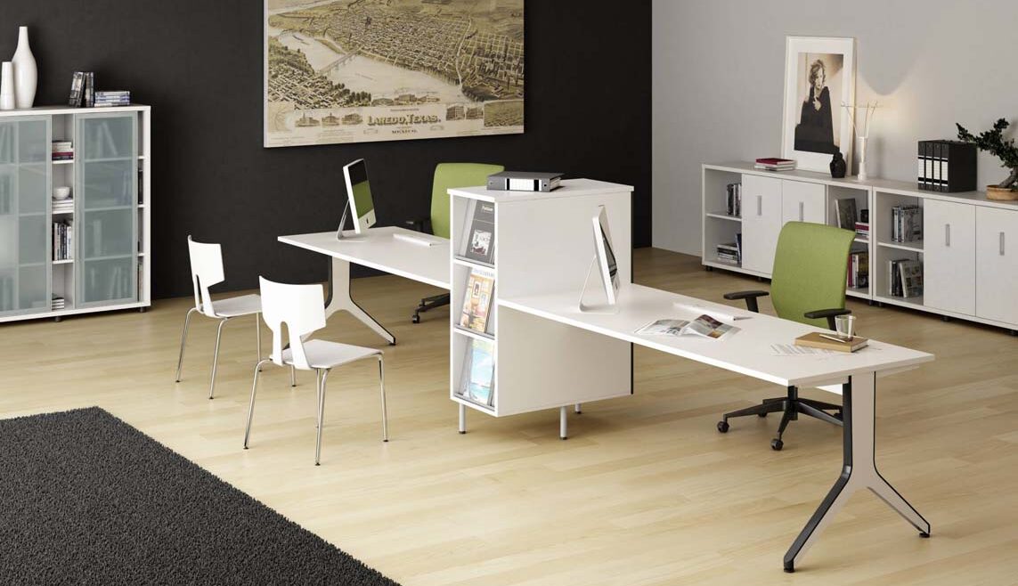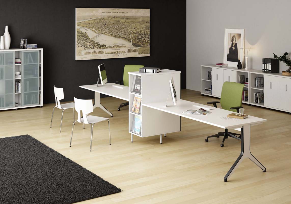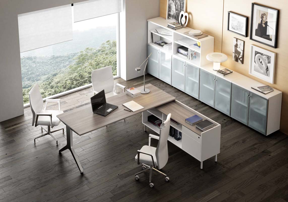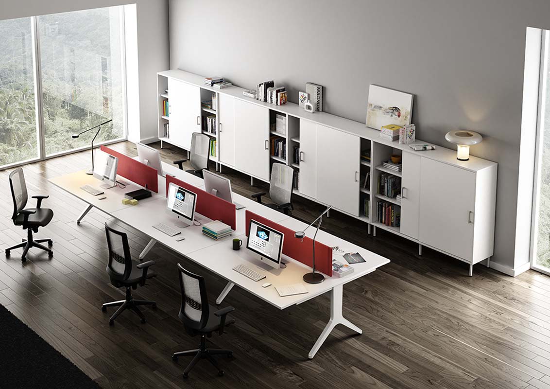 Sobres de mesa fabricados en aglomerado bilaminado de 25mm. de espesor. cantos rectos con tacón de PVC de 2 mm. de grosor.