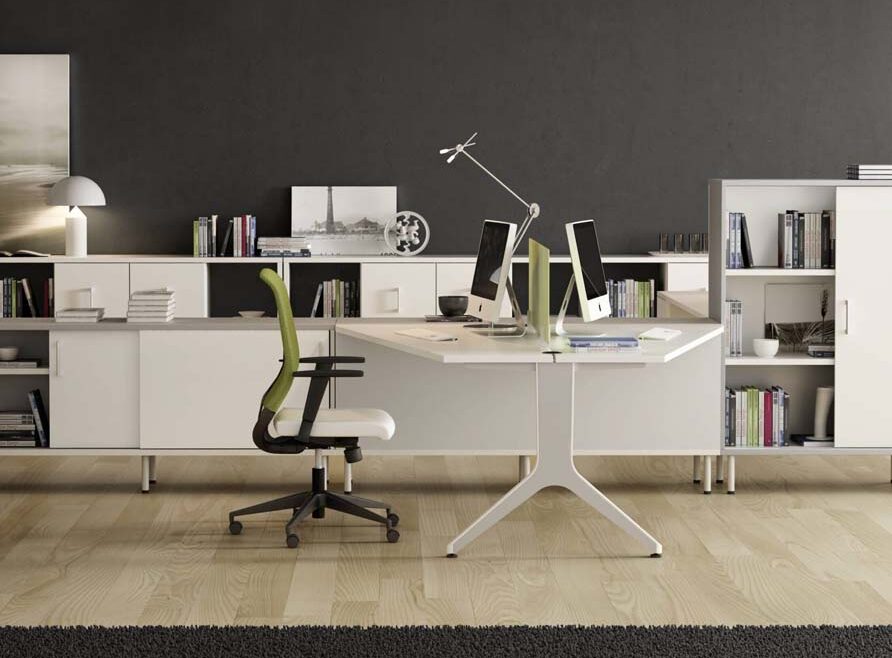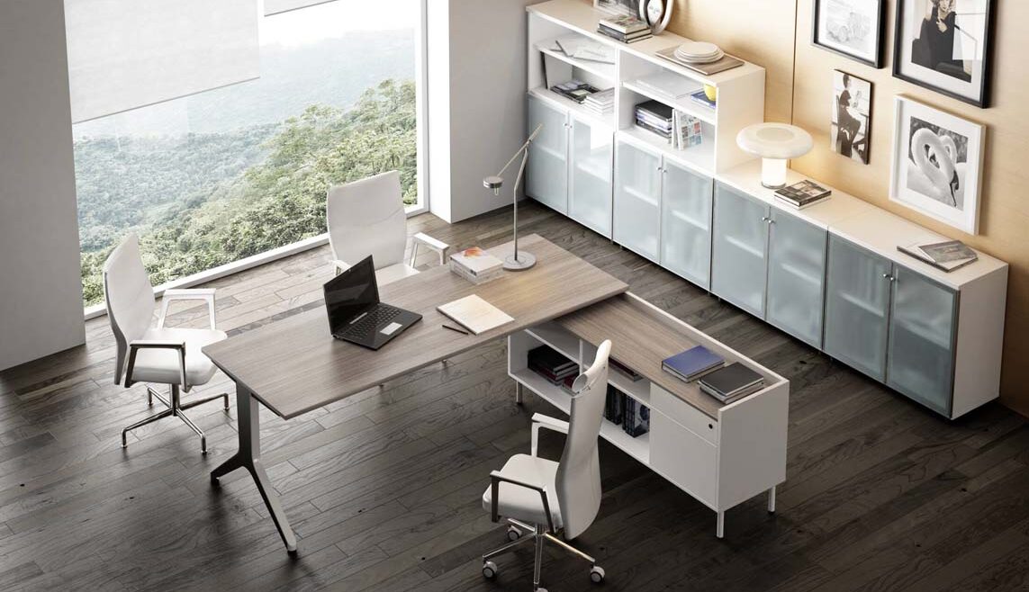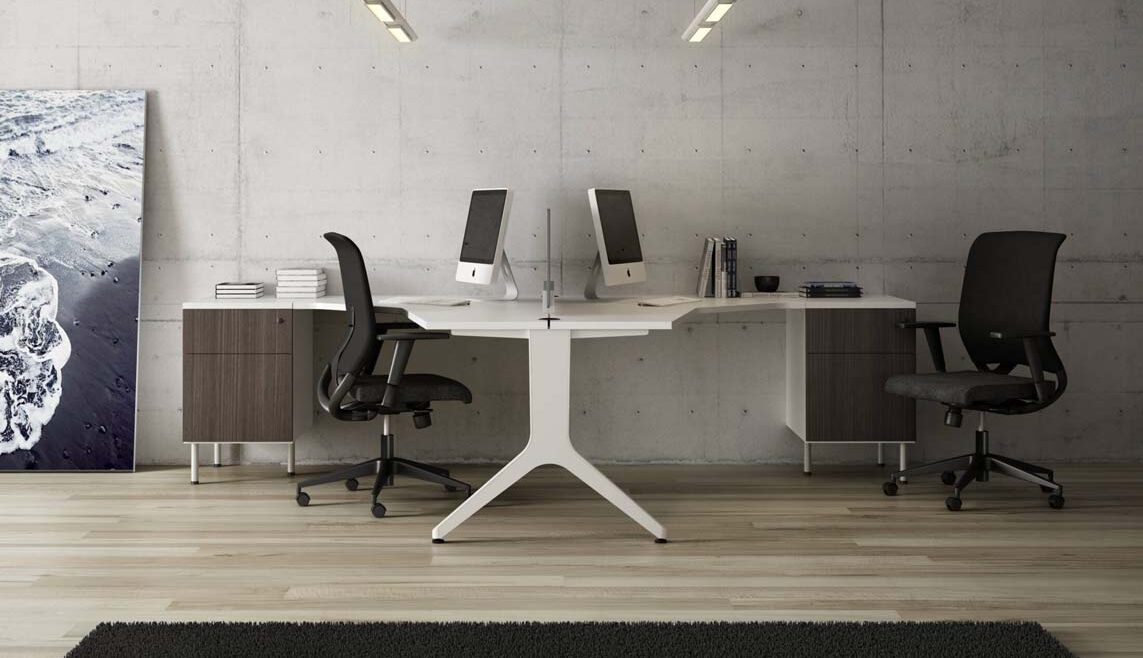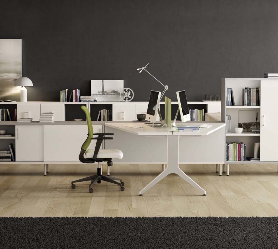 Ambas patas se unen a través de un faldón de bilaminado que une también la estructura al sobre