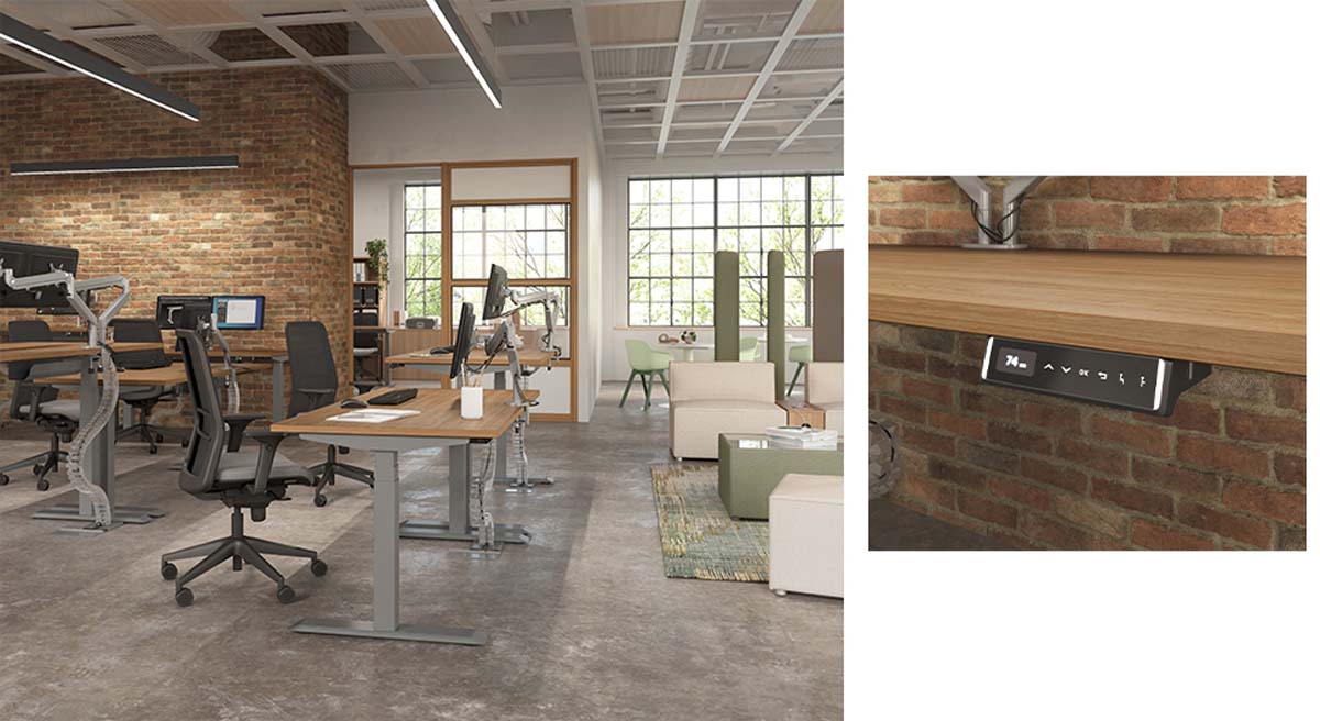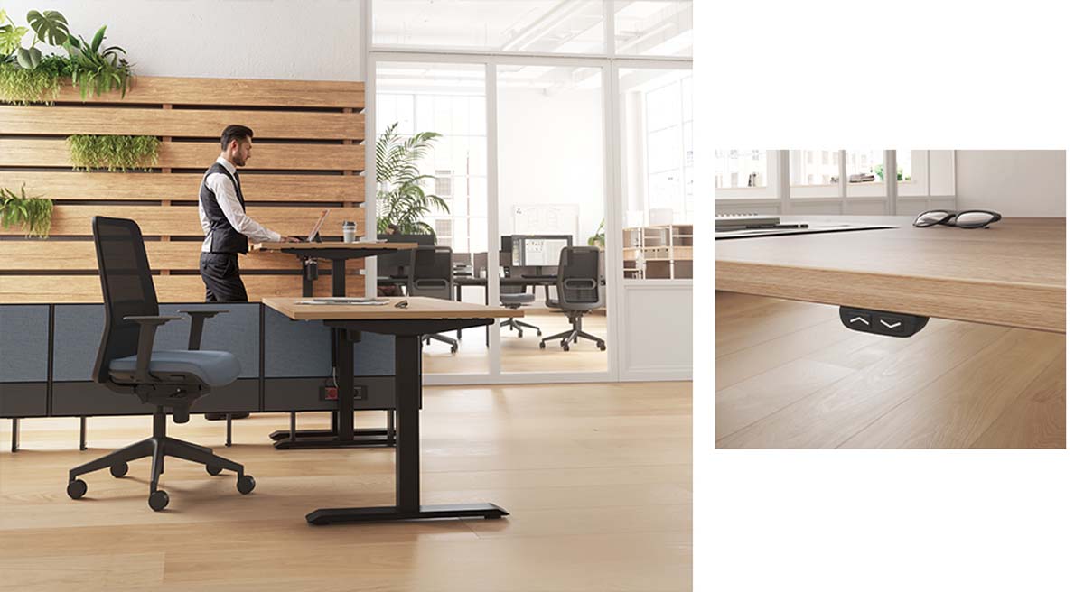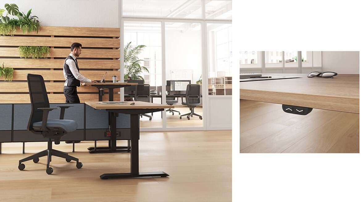 TRAM es una serie de mesas regulables en altura que permite trabajar sentado o de pie según las necesidades individuales fomentando el bienestar de sus usuarios.