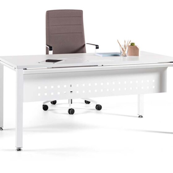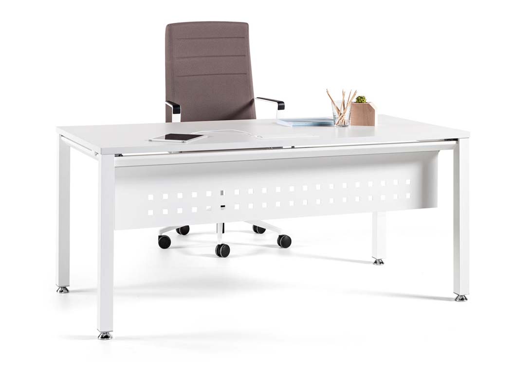 Mesa de oficina Vital Pro de Actiu es una mesa con estructura con perfil en laterales de acero laminado en caliente de seccion 50/50 y 1,5mm de espesor de color a elegir, con niveladores ( altura estandar de 74 cm) .